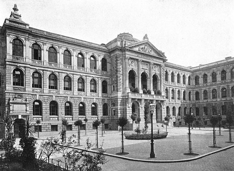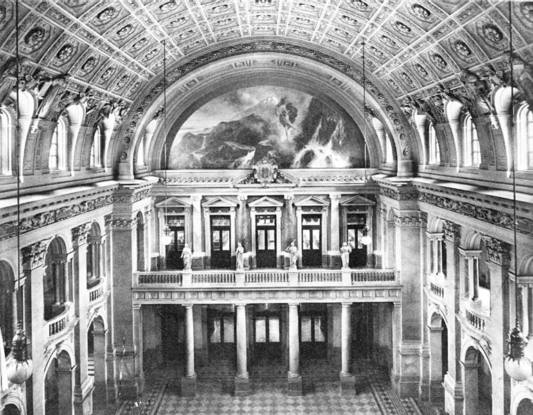Die Wandelhalle zwischen Albertinum und Augusteum der Universität Leipzig um 1900 / Unbekannt [Public domain], via Wikimedia Commons