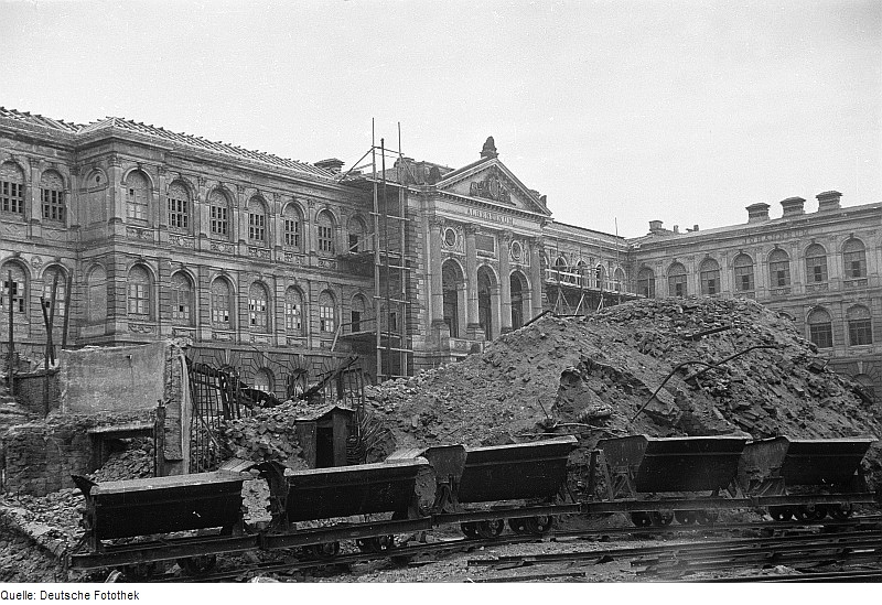 Beim Luftangriff auf Leipzig vom 4. Dezember 1943 wurde das Albertinum schwer beschädigt. 1946 wurde begonnen, Teile des Hauses wieder nutzbar zu machen, sodass in einigen Hörsälen bald wieder der Vorlesungsbetrieb aufgenommen werden konnte. Besondere Bedeutung erlangte der legendäre Hörsaal 40 mit seinen über 300 Plätzen. Hier hielten unter anderen Hermann August Korff, Hans Mayer und Ernst Bloch ihre stets überfüllten Literatur- und Philosophievorlesungen und traten Schriftsteller in Lesungen auf, wie Günter Grass, Ingeborg Bachmann, Willi Bredel, Peter Hacks, Anna Seghers und andere.
