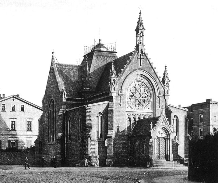 Mothes orientierte sich bei seinen Plänen am Early English Style, der englischen Frühgotik. Der Grundriss der Kirche war einem lateinischen Kreuz ähnlich. Im Langhaus befanden sich Seitenschiffe. Über dem Kirchenschiff ragte ein hoher hölzerner Dachstuhl. Die Front an der Sebastian-Bach-Straße war mit einer Fensterrose ausgeschmückt, eine lange Vorhalle schloss sich an den Eingangsbereich an. Ein ursprünglich angedachter Kirchturm im linken Eingangsbereich wurde nicht mehr verwirklicht.