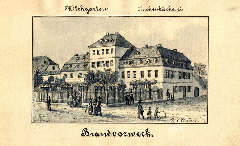 1860 finanzierte der Kaufmann Bernhard Hüffer (1824–1904) auf dem Brandvorwerk einen Hoffmannschen Ringofen, nach dem Scholwiner Muster der zweite weltweit. Solche Brenntechnik revolutionierte seinerzeit die Ziegelindustrie und machte durch Massenproduktion den Bauboom der Gründerzeit überhaupt erst möglich. Hüffer, seit 1862 auch Besitzer des Ökonomiehofes, gab mit seinem 1863 eingereichten Bebauungsplan den Startschuss zum städtischen Ausbau der Brandgemarkung. Aus seinen Ziegeln besteht ein Gutteil der Schleusen und Häuser der heutigen Leipziger Südvorstadt, jenes Ortsteils, der schließlich aus den ehemaligen „Brandfeldern“ und südlichen „Stadtfeldern“ hervorging.