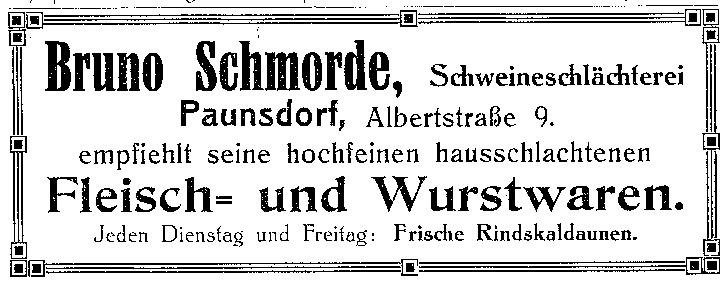 Bruno Schmorde, Paunsdorf, Albertstr.9 Veröffentlicht am 15. Dezember 2018 222teilen twittern merken teilen Bewertung Bruno Schmorde, Paunsdorf, Albertstr.9