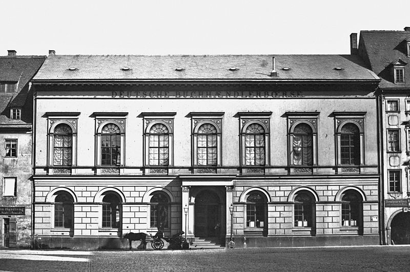 Am 26. Oktober 1834 wurde der Grundstein gelegt, und am 26. April 1836 konnte die Buchhändlerbörse feierlich eingeweiht werden. Nun fanden neben der Handelstätigkeit zu den Ostermessen hier auch die Hauptversammlungen des Börsenvereins statt.