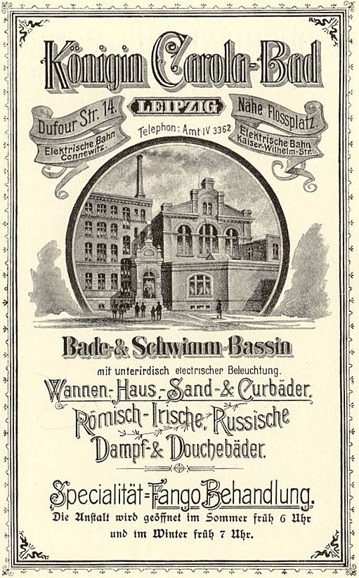 Die Geschichte des Carolabads begann 1891, als der Leipziger Kaufmann Hermann Wilhelm Müller das Grundstück in der Dufourstraße 14 erwarb und dort eine Badeanstalt errichten ließ. Der Architekt Hugo Altendorff gestaltete das Wohn- und Geschäftshaus mit der dazugehörigen Badeeinrichtung im Hof. 1903 wechselte der Besitz des Carolabads zu L. M. Gebhardt, und 1909 übernahm es der Kaufmann Ewald Blanke.