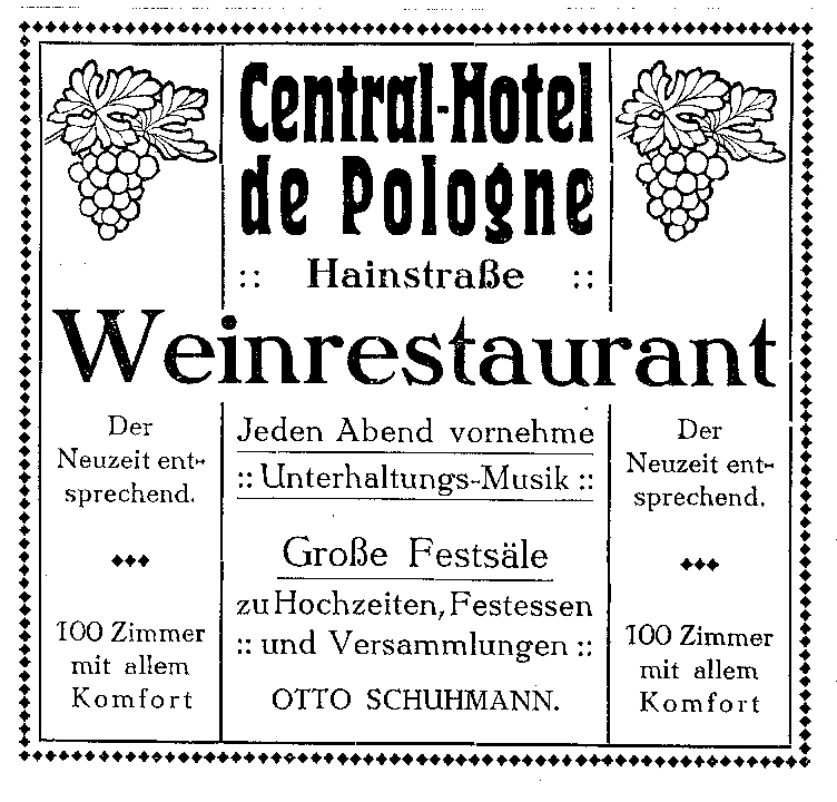 Central-Hotel de Pologne, Hainstr. Veröffentlicht am 2. Dezember 2018 205teilen twittern merken teilen BewertungCentral-Hotel de Pologne, Hainstr.