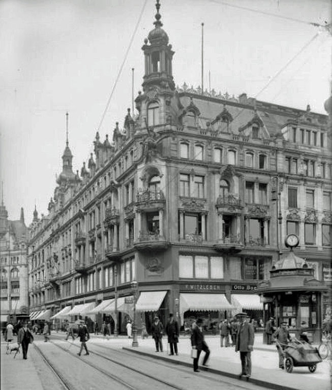 Neben der Pelzwarenmanufaktur Witzleben als Hausherr mieteten sich, zum Teil mit getrennten Eingängen und Raumgruppen über mehrere Etagen, die folgenden Firmen ein: „F. G. Mylius – Papier- und Comptoirutensilien“ (mit eigener Druckerei), „F. H. Schüler – eleganter Putz und Damenmode“, „Wilhelm Felsche – Schokoladen- und Kakaofabrik“ sowie das „Bankgeschäft Bruhm und Schmidt“. In der Folgezeit gab es auch Wechsel, Mode-Schüler zog beispielsweise 1905 wieder aus.