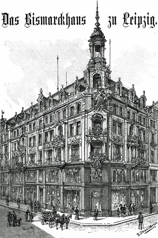 Das Bismarckhaus in Leipzig, Zeichnung aus der Illustrirten Zeitung von 1897 / B. Stressbergen [Public domain], via Wikimedia Commons