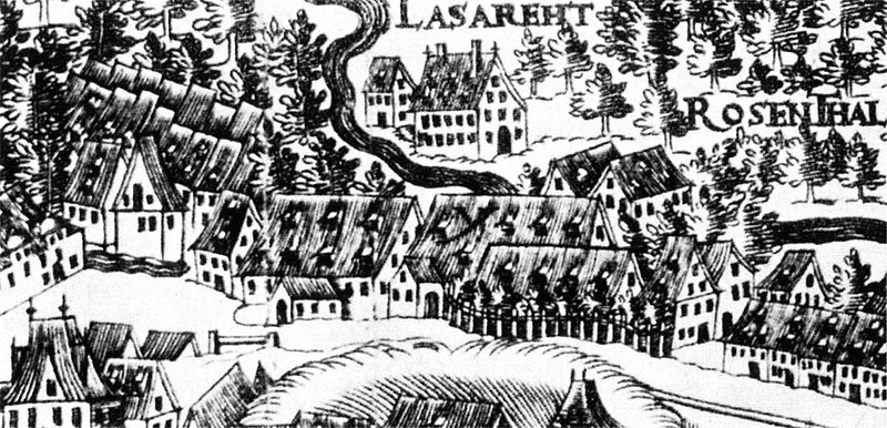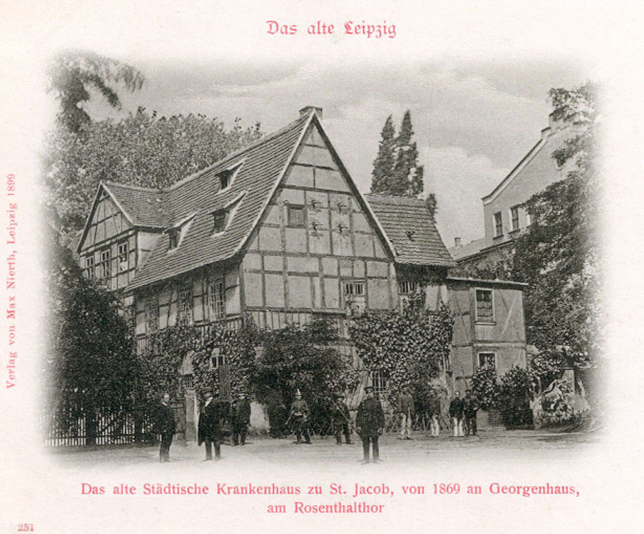 Das alte Jacobshospital in Leipzig / unbekannt (Verleger Nierth 1899) [Public domain]