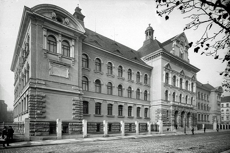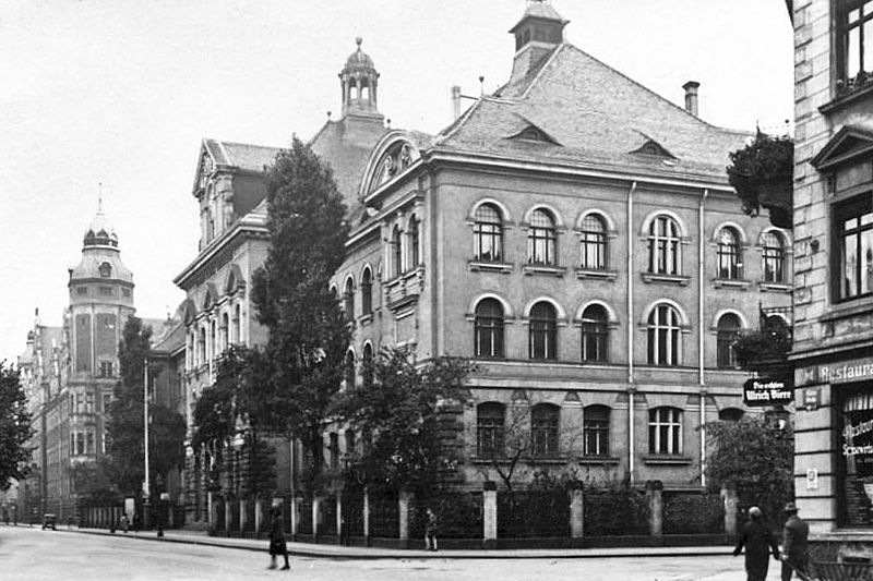 Königin-Carola-Gymnasium in Leipzig, Elisenstraße 62, im Hintergrund das Amtsgericht, um 1910 / Foto: Public Domain