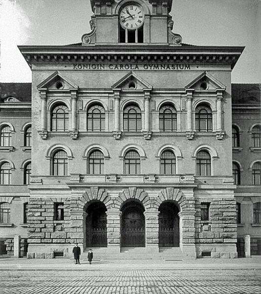 Straßenansicht des Königin-Carola-Gymnasiums in Leipzig 1902/ Foto: Hermann Walter (1838–1909) [Public domain]Zur Zeit der Eröffnung war es neben dem König-Albert-Gymnasium eines der beiden sogenannten Staatsgymnasien der Stadt. Während der Zeit des Nationalsozialismus wurde das Gymnasium 1937/38 zunächst in Friedrich-Nietzsche-Schule, Staatliche Oberschule für Jungen und später in Günther-Prien-Schule, Staatliche Oberschule für Jungen umbenannt. Prien war im Zweiten Weltkrieg ein vom NS-Regime gefeierter U-Boot-Kommandant und hatte das Königin-Carola-Gymnasium einige Jahre besucht, dieses jedoch 1924 im Alter von 16 Jahren verlassen, um zunächst bei der Handelsmarine zur See zu fahren.
