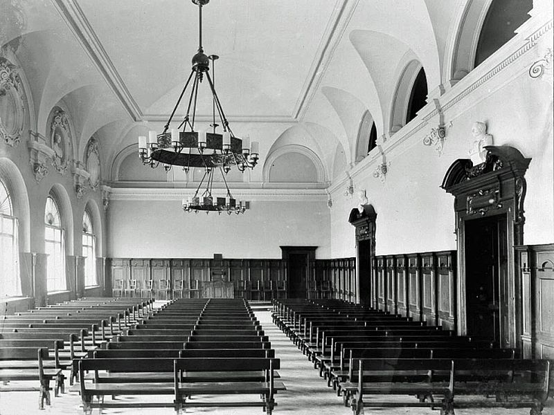 Die Aula im Königin-Carola-Gymnasium Leipzig 1902 / Foto: Hermann Walter (1838–1909) [Public domain]