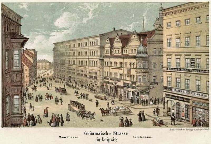 Bis zum Beginn des 19. Jahrhunderts reichte der Kirchhof der Universitätskirche, der ab 1653 zum Teil Botanischer Garten war, bis an die Grimmaische Straße. Mit der weiteren Entwicklung der Stadt wollte die Universität die günstige Lage an der Grimmaischen Straße ökonomisch nutzen. Sie errichtete deshalb 1817 zwischen dem Fürstenhaus und den Bauten am Grimmaischen Tor ein einstöckiges Gebäude mit vorgesetztem schmalen Säulengang, die Colonnaden, deren einzelne Einheiten an Kaufleute und Handwerker vermietet wurden.
