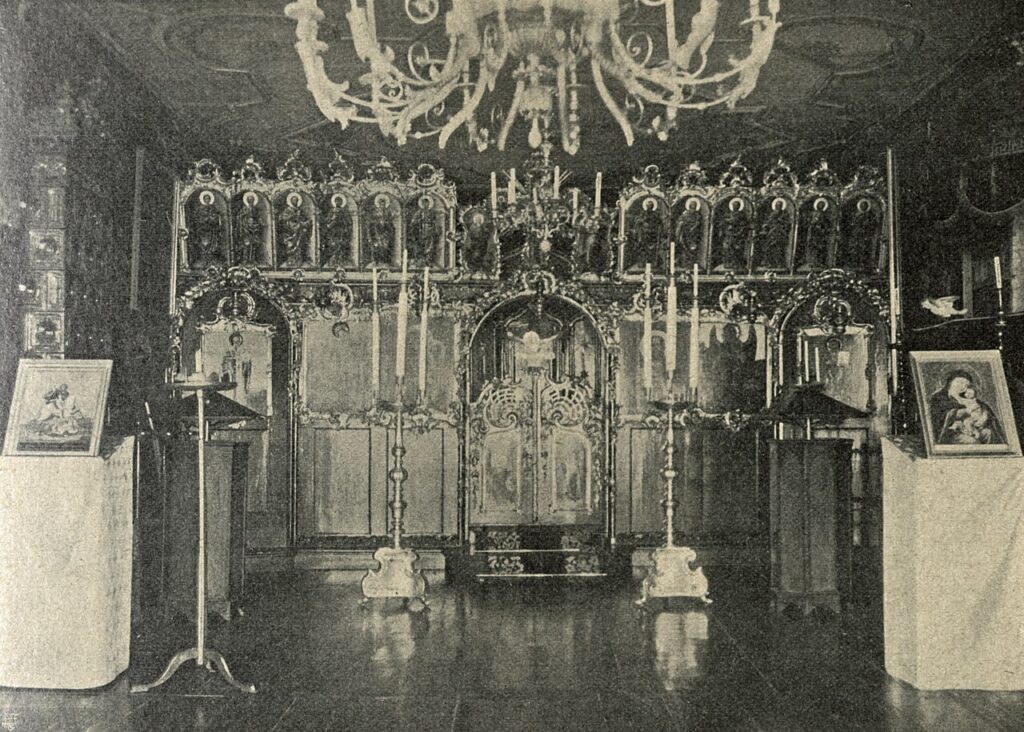 Schon um das Jahr 1700 fanden im Griechenhaus regelmäßig griechisch-orthodoxe Gottesdienste statt, zunächst in einem sogenannten Griechischen Bethaus. Im 18. Jahrhundert wurde sogar ein spezieller Kapellenraum eingerichtet. 1858 wurde das Griechenhaus als erste orthodoxe Kirche Deutschlands anerkannt. Neben griechischen Gläubigen nutzten auch russische und rumänische Gemeindemitglieder das Gotteshaus. Die Gemeinde setzte sich hauptsächlich aus Kaufleuten und Studenten zusammen, darunter prominente Persönlichkeiten wie der Theologe Eugenios Voulgaris, der von 1763 bis 1771 in Leipzig lebte.