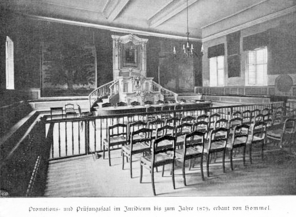 Erst 1770 konnte die Universität das Gelände zurückerwerben. Unter der Leitung des Juristen Carl Ferdinand Hommel wurde 1773 ein zweistöckiges Gebäude errichtet, das als Hommelbau bekannt wurde. Es diente als Wohnhaus für Professoren und enthielt einen Hörsaal für die Juristenfakultät. Von nun an trug das Gebäude den Namen Juridicum.