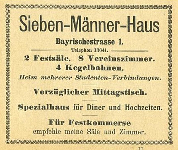 Annonce der Gaststätte Siebenmännerhaus in Leipzig / Public Domain