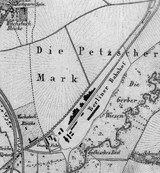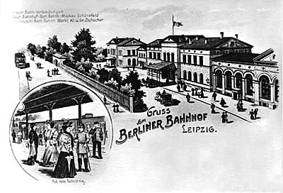 „Die jüngste Schöpfung dieser Art ist die 8 3/4 Meilen lange, am 1. Febr. 1859 eröffnete Strecke der Berlin-Anhaltschen Bahn, welche die preußische Hauptstadt auf dem kürzesten Wege über Bitterfeld mit Leipzig verbindet; der Bahnhof ist leider von der Stadt weit abgelegen.“