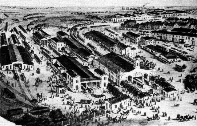 Dresdner Bahnhof (rechts) und Magdeburger Bahnhof (links) in Leipzig, 1862 / Foto: Public Domain