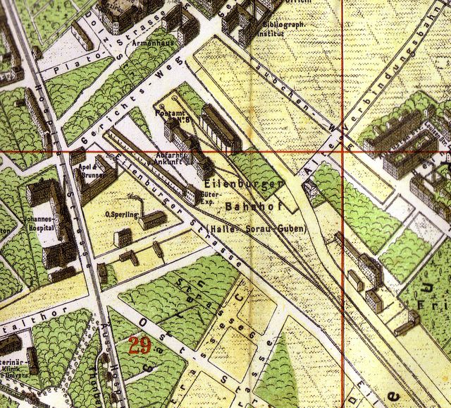 Der Eilenburger Bahnhof von Leipzig auf einer Karte von 1884