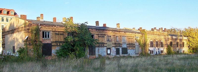 Güterabfertigungsgebäude des ehemaligen Eilenburger Bahnhofes in Leipzig-Reudnitz, Eilenburger Straße, Lene Voigt Park. / Joeb07 (Johannes Kazah) [CC BY 3.0], via Wikimedia Commons