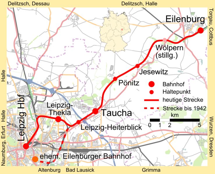 Bahnstrecke Leipzig–Eilenburg mit ehemaligem Verlauf zum Eilenburger Bahnhof