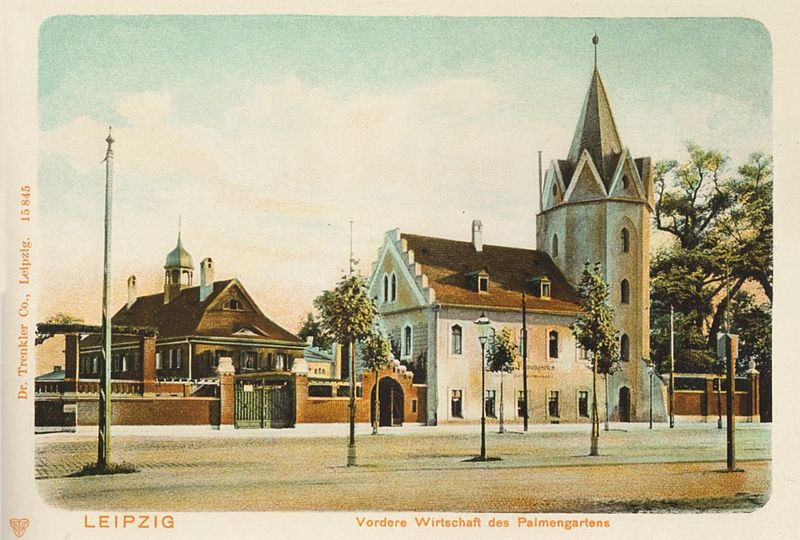 Der Kuhturm in Leipzig-Lindenau, auch Vordere Wirtschaft des Palmengartens, 1902 / Unbekannt (Postkarte, Verl. Dr. Trenkler) [Public domain]1939 wurden der Kuhturm und weitere angrenzende Gebäude zugunsten der geplanten, aber nie veranstalteten Gutenberg-Reichsausstellung gesprengt. Nach dem Kuhturm sind die dem ehemaligen Standort nahe gelegene Kuhturmstraße und die Kuhturmallee sowie eine Galerie in Lindenau benannt.