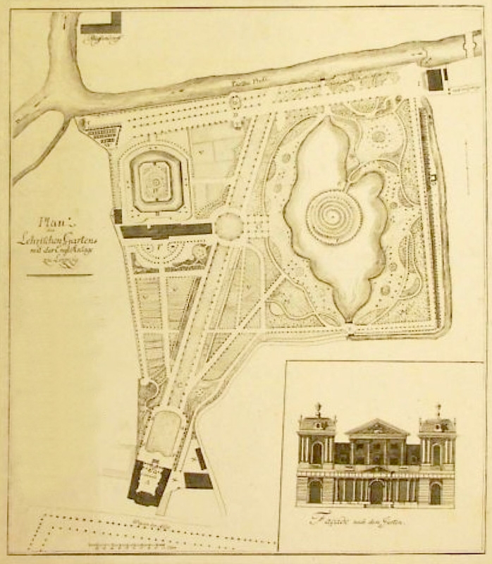 Im Jahr 1764 kam der Leipziger Bankier Eberhard Heinrich Löhr nach dem Tod seines Schwiegervaters Gottlieb Barthel in den Besitz von Barthels Hof. Dazu gehörte offenbar auch ein Grundstück nördlich der Stadt, das in Stadtplänen bis zu diesem Zeitpunkt als Barthels Garten bezeichnet wird. Löhr kaufte noch benachbartes Gelände und ließ 1770/71 nach Plänen von Johann Carl Friedrich Dauthe (1749–1816) in dem sumpfigen Terrain seinen Garten errichten.
