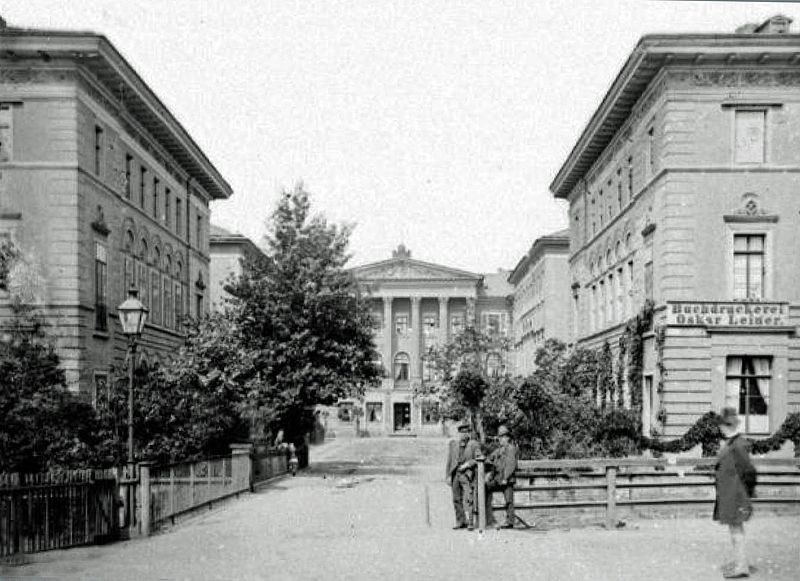 Die Wohnbebauung in Lurgensteins Garten hinter dem Pleißemühlgraben, um 1885 / Hermann Walter (1838-1909) [Public domain]