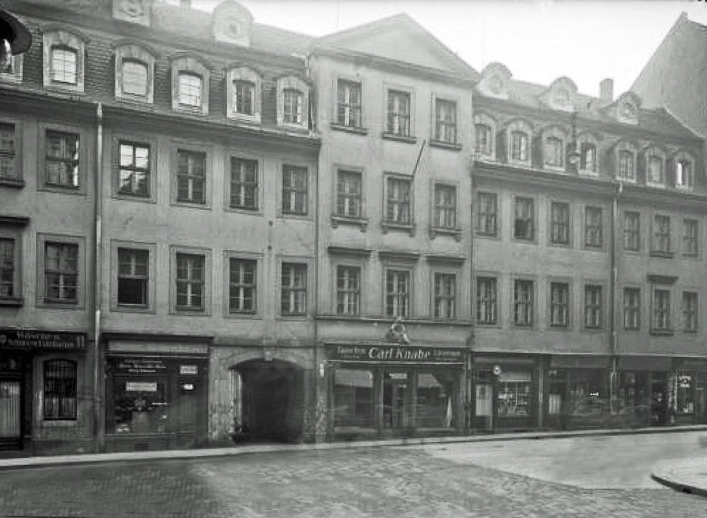„Eine sehr angenehme und für mich heilsame Verbindung, zu der ich gelangte, war die mit dem Breitkopfischen Hause. […] Bernhard Christoph Breitkopf […] bewohnte den ‚Goldenen Bären‘, ein ansehnliches Gebäude auf dem Neuen Neumarkt, mit Gottsched als Hausgenossen.“