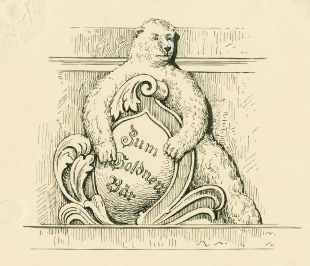 Das Hauszeichen des Hauses „Goldener Bär“ in Leipzig um 1900 / Public Domain