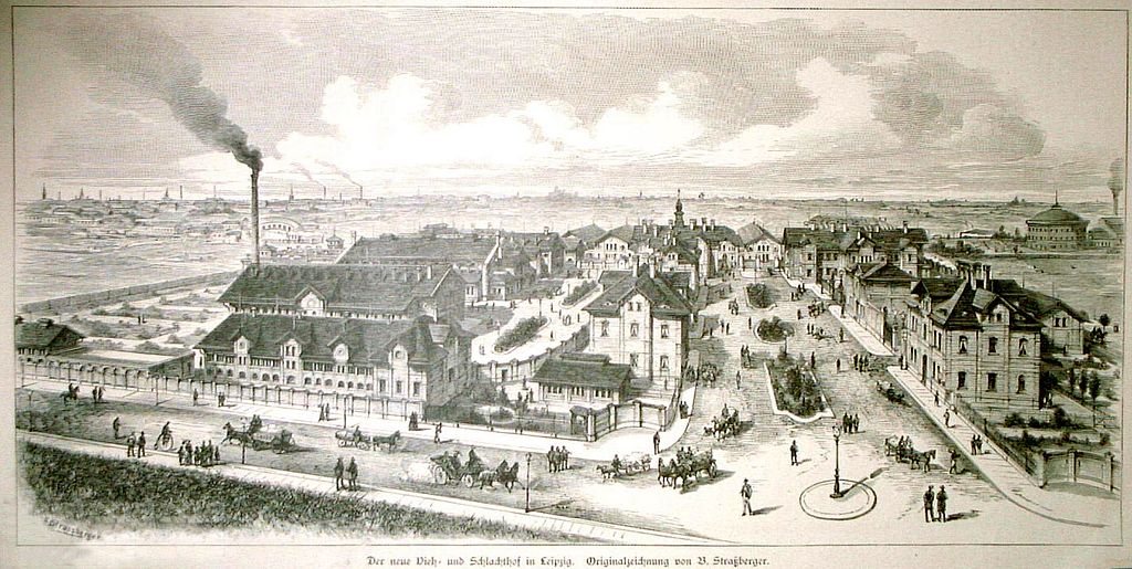 Die Gesamtansicht des Schlachthofs in Leipzig um 1890 / Public Domain