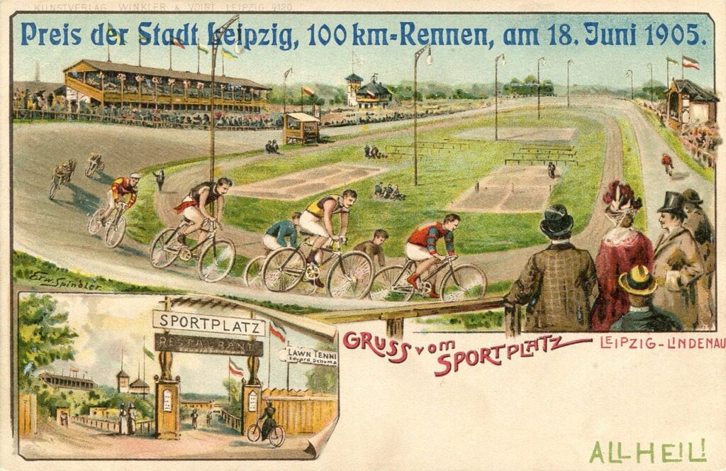 Die Radrennbahn, die als „Lindenauer Zement“ bekannt war, zählte zu den schnellsten Bahnen Deutschlands. Auf der 500 Meter langen Strecke wurden mehrere deutsche, europäische und weltweite Meisterschaften im Bahnradsport ausgetragen. 1901 stellte Thaddäus Robl hier einen Stundenweltrekord auf. Neben Radrennen wurde die Bahn auch für Motorradrennen genutzt.