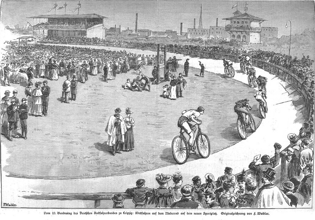 Die offizielle Eröffnung des Sportplatzes fand im September 1892 statt. Zu diesem Zeitpunkt umfasste das Gelände bereits eine große Radrennbahn mit Tribüne sowie mehrere kleinere Sport- und Spielplätze. Ein Jahr nach der Eröffnung wurde die Holztribüne der Radrennbahn durch ein Feuer zerstört, konnte aber mit einem Darlehen der Stadt Leipzig wieder aufgebaut werden.