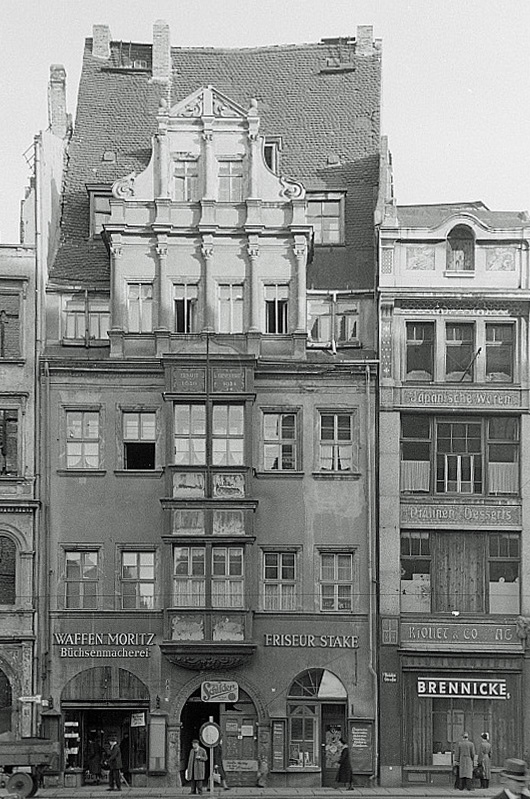 Deutrichs Hof (Reichsstraße) 1948 / <a href="https://commons.wikimedia.org/wiki/File:Fotothek_df_roe-neg_0000532_001_Geb%C3%A4ude_Reichstra%C3%9Fe,_Kaffeehaus_Riquet,_Waffen_Moritz.jpg">Deutsche Fotothek‎</a>, <a href="https://creativecommons.org/licenses/by-sa/3.0/de/deed.en">CC BY-SA 3.0 DE</a>, via Wikimedia Commons