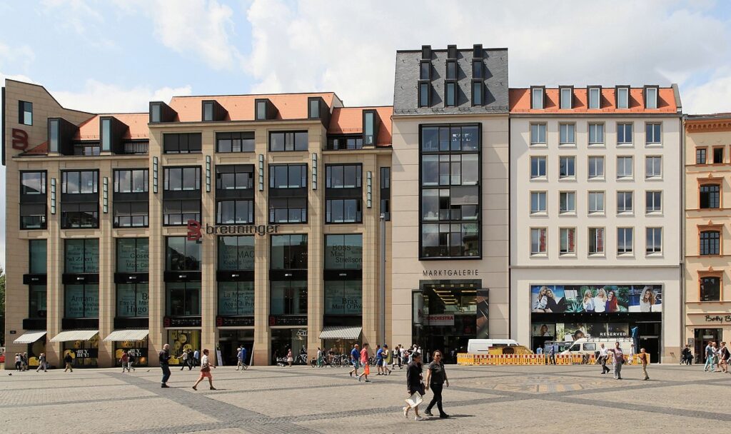 Nachfolgebauten: Marktgalerie (2015) / <a href="https://commons.wikimedia.org/wiki/File:Leipzig_-_Markt_%2B_10_01_ies_cropped.jpg">Frank Vincentz</a>, <a href="https://creativecommons.org/licenses/by-sa/3.0">CC BY-SA 3.0</a>, via Wikimedia Commons