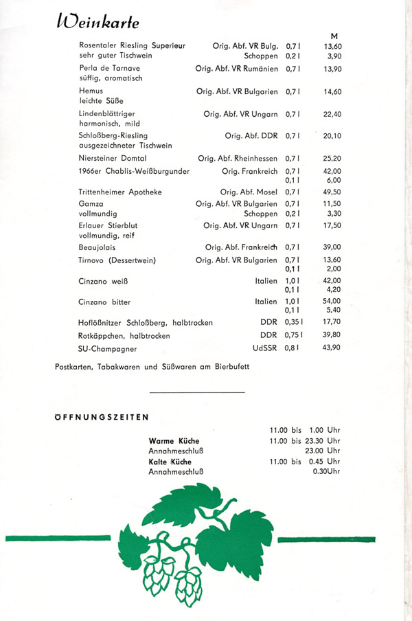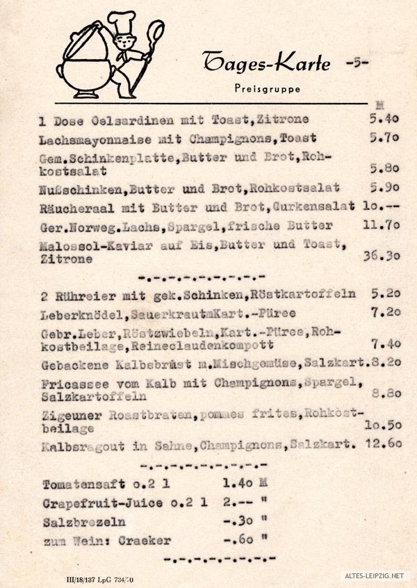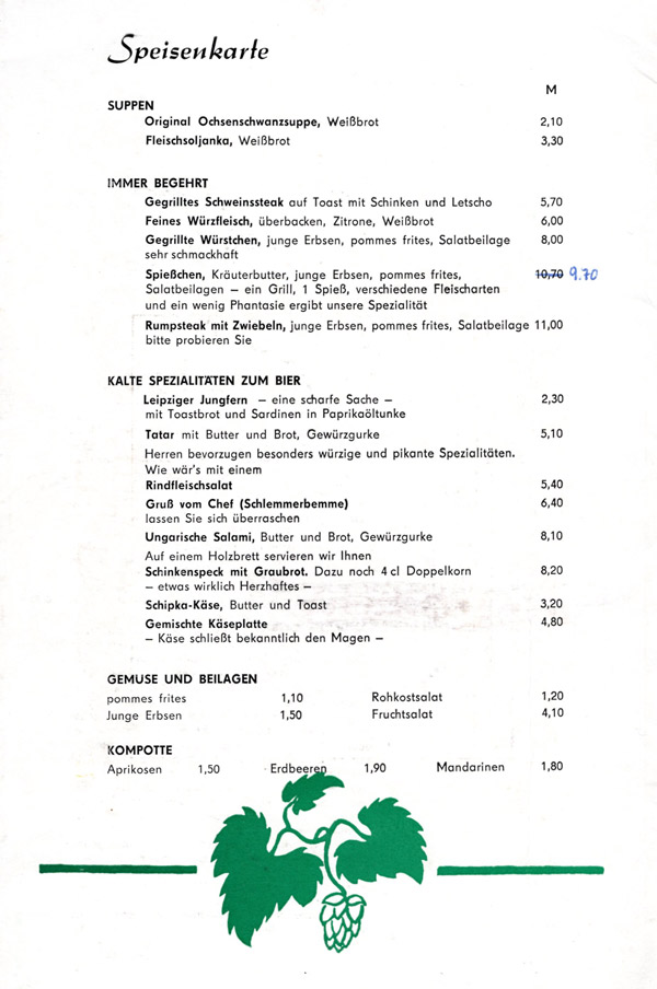 Speisekarte aus DDR-Zeiten aus dem Jahr 1969 / Scan altes-leipzig.net