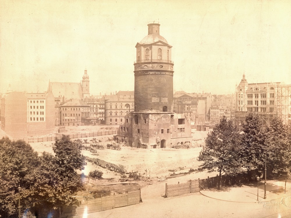 Mit der Einweihung der Kaserne in Möckern im Jahr 1875 endete die militärische Nutzung der Pleißenburg. Die Burg verlor endgültig ihre strategische Bedeutung und wurde 1895 von der Stadt Leipzig vom Königreich Sachsen erworben. 1897 begann der Abbruch der Pleißenburg, um Platz für neue städtische Bauprojekte zu schaffen.