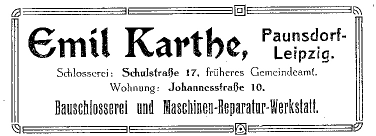 Emil Karthe,Paunsdorf, Schulstr.17 Veröffentlicht am 15. Dezember 2018 193teilen twittern merken teilen Bewertung Emil Karthe,Paunsdorf, Schulstr.17
