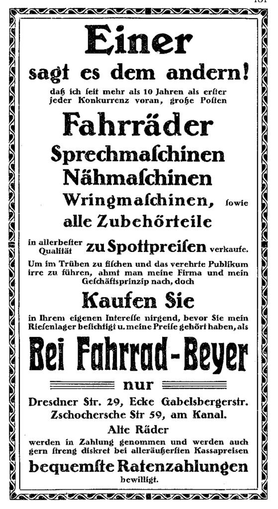 Fahrrad Bayer, Dresdner Str.29 Veröffentlicht am 1. Dezember 2018 163teilen twittern merken teilen BewertungFahrrad Bayer, Dresdner Str.29
