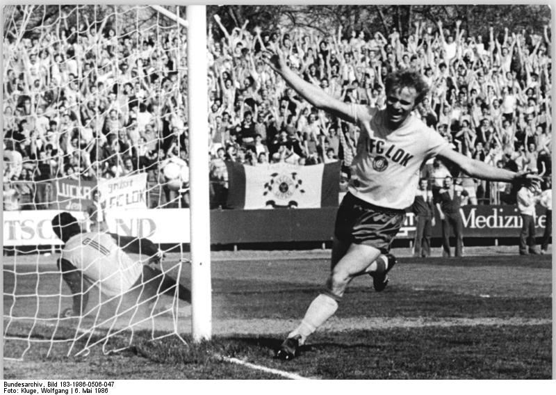 06.05.1986 – Lok im Pokalfinale. Im Rückspiel des Halbfinales um den FDGB-Pokal bezwang der 1. FC Lok Leipzig den BFC Dynamo mit 3:1 und zog aufgrund der Auswärtstorregel ins Finale ein. Das erste Tor für die Messestädter erzielte Dieter Kühn, der in der 22. Minute nach Linksflanke von Zötzsche dem Berliner Torhüter Bodo Rudwaleit keine Chance ließ.