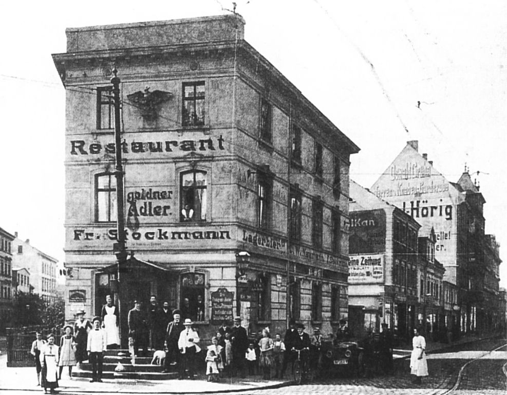 Gasthof „Goldener Adler“ Veröffentlicht am 1. Oktober 2023 459teilen twittern merken 0 teilen BewertungRestaurant „Zum goldenen Adler / Public DomainRestaurant „Zum goldenen Adler“ in Leipzig, Dieskaustraße Ecke Windorfer Straße (um 1900; das Gebäude wurde 1994 abgerissen)