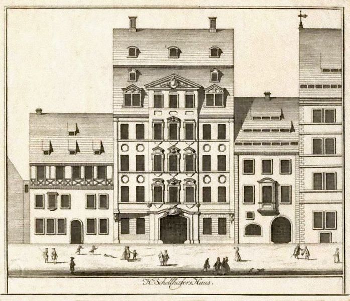 Im Jahre 1711 (oder 1717) wurde auf dem jetzigen Grundstück Klostergasse 9 für die Leipziger Handelsfamilie Schellhafer für den Handelsherrn Nicolaus Zehe) ein barockes Stadthaus errichtet. Das ehemals dem Augustiner-Chorherrenstift gehörende Grundstück war schon vor dessen Säkularisation in Privatbesitz, gehörte z. B. 1529 dem Bürgermeister Wolf Wiedemann und war schon bebaut. Das Barockhaus wird sowohl bei David Schatz als auch bei Christian Döring als dessen Werk angegeben. Beide waren zu dieser Zeit in Leipzig tätig.
