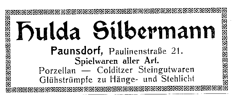 Hulda Silbermann, Paunsdorf, Paulinenstr. 21 Veröffentlicht am 15. Dezember 2018 215teilen twittern merken teilen Bewertung Hulda Silbermann, Paunsdorf, Paulinenstr. 21