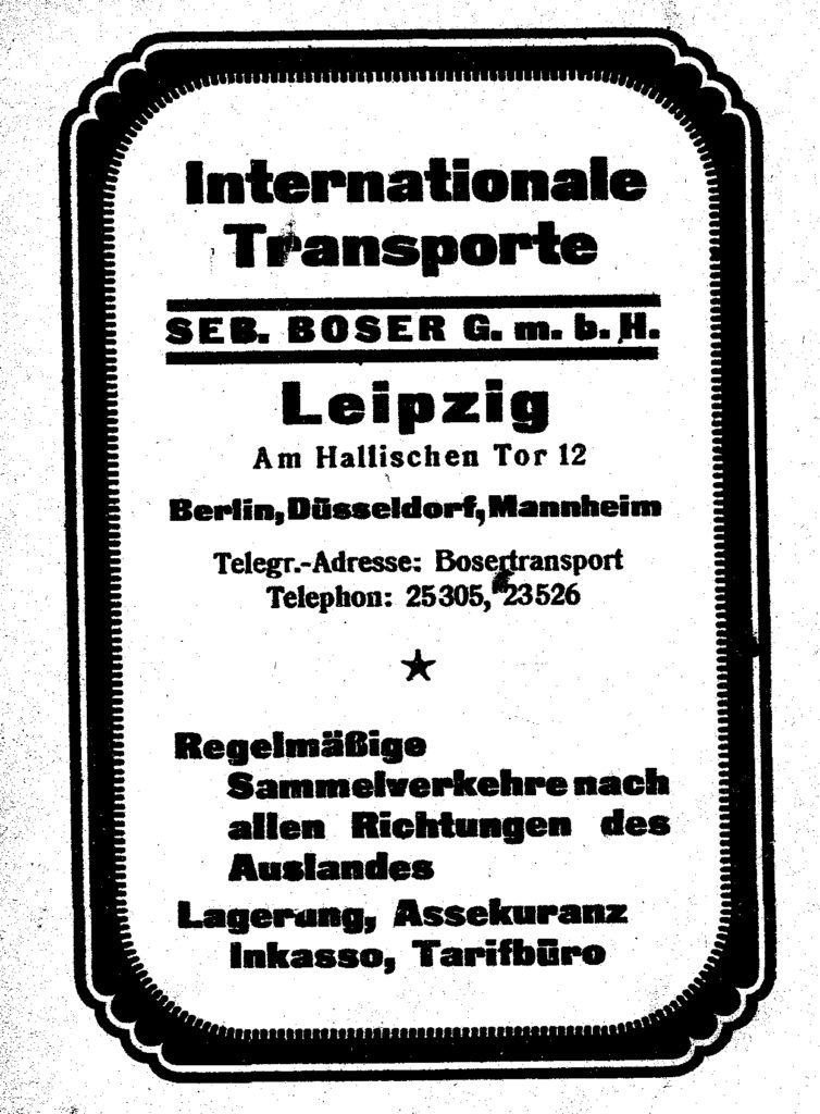 Int.Transporte Seb.BoserGmbH,Am Hallischen Tor 12 Veröffentlicht am 25. November 2018 121teilen twittern merken 0 teilen BewertungInt.Transporte Seb.BoserGmbH,Am Hallischen Tor 12