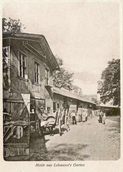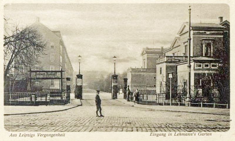 Der Eingang zu Lehmanns Garten in Leipzig (früher Kleinbosischer Garten) auf einer Postkarte um 1900 / Verlag Dr. Trenkler (Postkarte) [Public domain]1880 erwarb die Leipziger Immobiliengesellschaft einen Großteil von Lehmanns Garten und stellte einen Bebauungsplan auf, der 1881 von den Stadtverordneten genehmigt wurde. Nun begann die Bebauung des Wiesengartens, dem zum Ende des 19. und zu Beginn des 20. Jahrhunderts auch der vordere Teil, der ehemalige Lustgarten folgte. Der ehemaligen Hauptallee entspricht der Verlauf der Bosestraße. An der Stelle des Lehmannschen Herrenhauses wurde 1908 das Gebäude der Leipziger Lebensversicherungsanstalt errichtet, das heute von der Musikhochschule Leipzig genutzt wird.