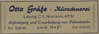 Kürschnerei Otto Gräfe Veröffentlicht am 3. März 2019 268teilen twittern merken teilen 5/5 - (1 Bewertungen) Kürschnerei Otto Gräfe, Leipzig C 1, Nikoleistr. 47-51