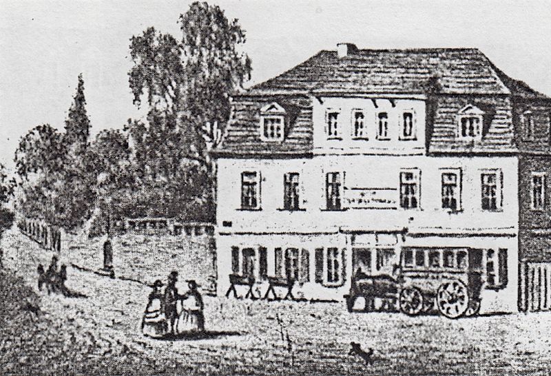 Der Gasthof Zum Sächsischen Haus in Connewitz vor dem Umbau 1868 / Ludwig Hochstein (Zeichner) [Public domain], Wikimedia Commons