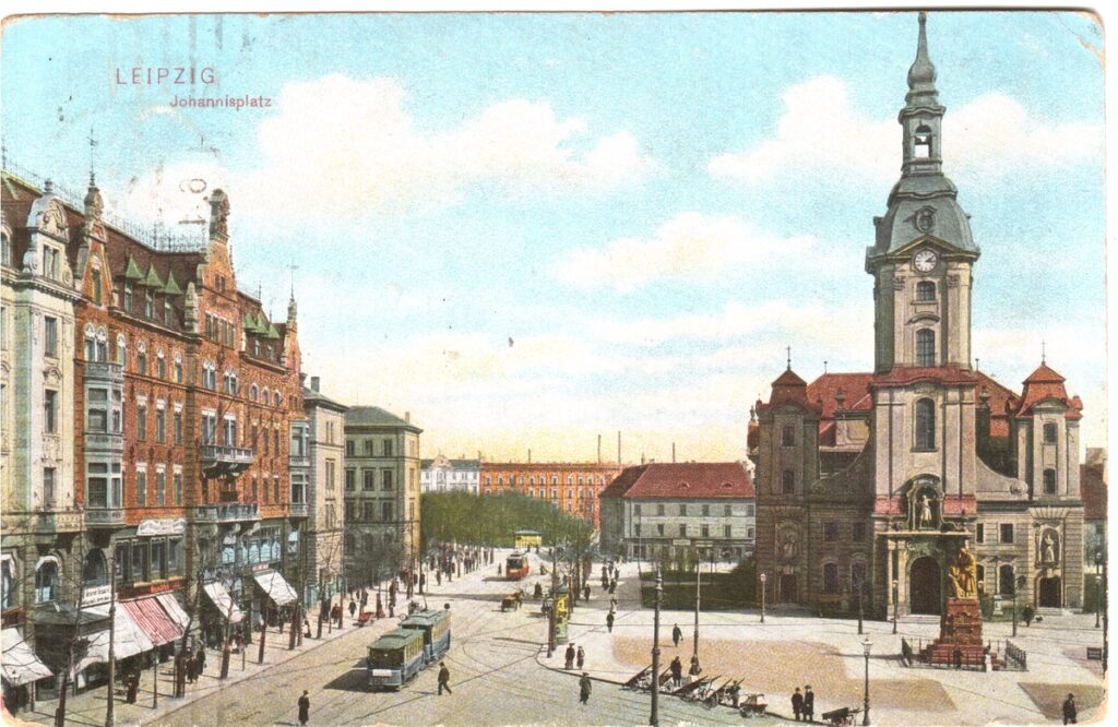 Leipzig-Johannisplatz Veröffentlicht am 8. Oktober 2023 192teilen twittern merken teilen BewertungLeipzig-Johannisplatz, Ansichtskarte von 1910 / Public DomainLeipzig-Johannisplatz, Ansichtskarte von 1910 / Unknown photographer (scanned by and courtesy of Derzsi Elekes Andor), Public domain, via Wikimedia Commons