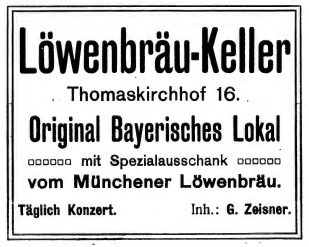 Löwenbräu-Keller, Thomaskirchhof 16 Veröffentlicht am 21. Dezember 2018 313teilen twittern merken teilen Bewertung Löwenbräu-Keller, Thomaskirchhof 16