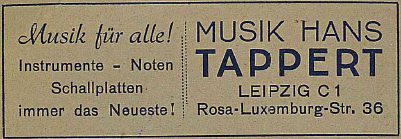 Musik Hans Tappert Veröffentlicht am 1. März 2019 406teilen twittern merken 0 teilen 5/5 - (2 Bewertungen) Musik Hans Tappert, Leipzig C 1, Rosa-Luxemburg-Str. 36