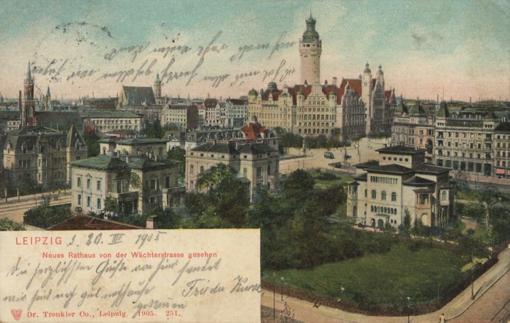 Neues Rathaus von der Wächterstrasse (1905) Veröffentlicht am 15. November 2018 218teilen twittern merken teilen BewertungNeues Rathaus von der Wächterstrasse (Dimitroffstrasse) (1905)Bild-Quelle: http://www.zeno.org – Contumax GmbH & Co. KG (gemeinfrei)