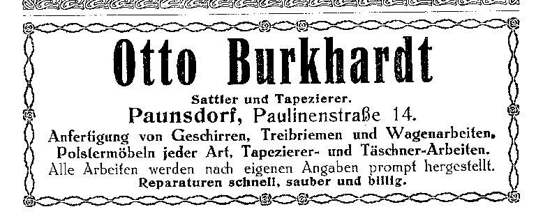 Otto Burkhardt, Paunsdorf, Paulinenstr.14 Veröffentlicht am 15. Dezember 2018 292teilen twittern merken 0 teilen Bewertung Otto Burkhardt, Paunsdorf, Paulinenstr.14